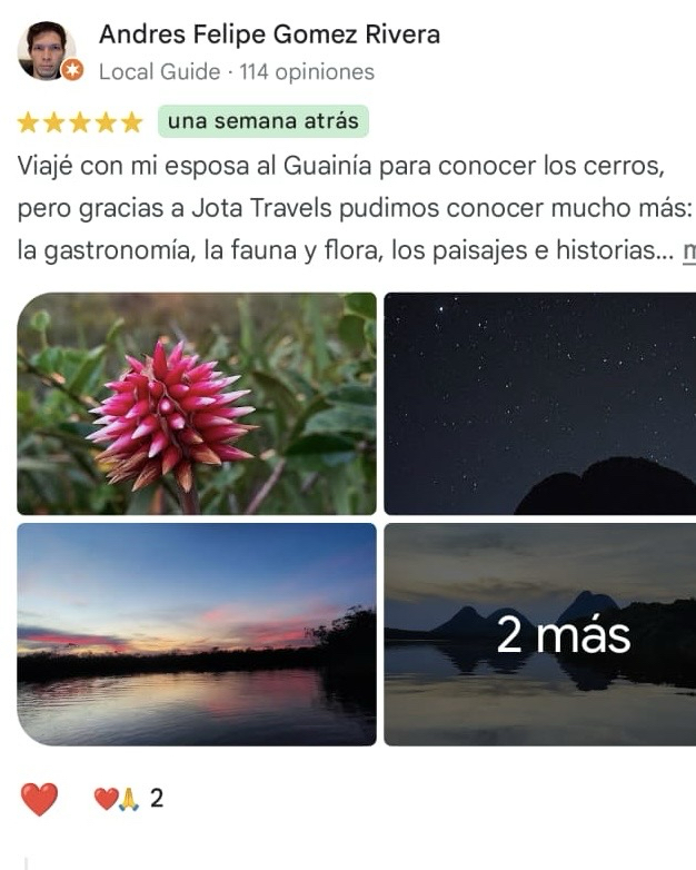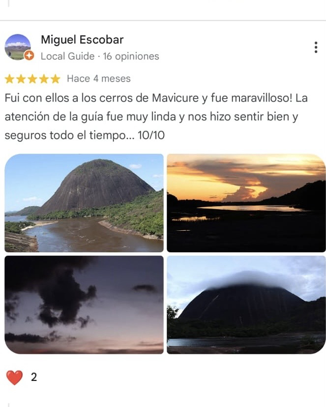 Somos una Agencia de Turismo Comunitario Indígena del Guainía con un alto sentido de respeto hacia la cultura y la naturaleza. Si el turismo masivo no es lo tuyo y buscas una experiencia auténtica que impacte positivamente al mayor número de familias que habitan los Cerros de Mavicure y otras comunidades del departamento del Guainía, has llegado al lugar correcto. Ofrecemos expediciones con grupos reducidos (Máx. 9 personas) con experiencias únicas para aventureros como tú que poseen un profundo amor por la naturaleza y gran respeto hacia la cultura indígena. Que buscan vivir nuevas experiencias, crear recuerdos memorables y aportar de manera significativa a un cambio positivo a las familias de estos lejanos territorios.