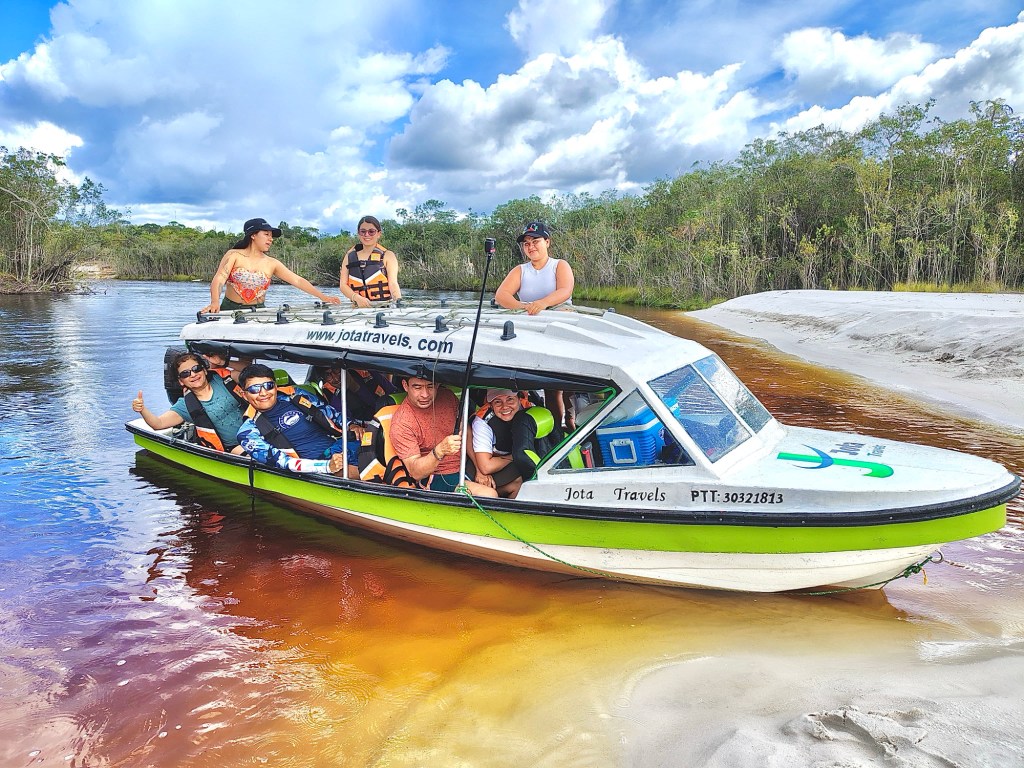 Pasadía Estrella Fluvial – Navegando los ríos Inírida, Guaviare, Atabapo y Orinoco. Realizando avistamiento de aves y toninas o delfines de río con binoculares profesionales, disfrutando de los afloramientos rocosos, las playas de arenas blancas en el verano y las agua rojas del río Atabapo.