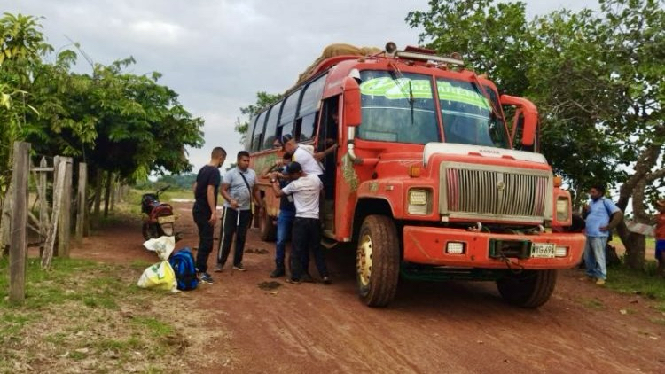 Desde San José del Guaviare deben tomar el yate o la línea fluvial que se dirige hasta el municipio de Barrancominas. Este trayecto demora dos días y primero deben pernoctar el en el Raudal de Mapiripana.