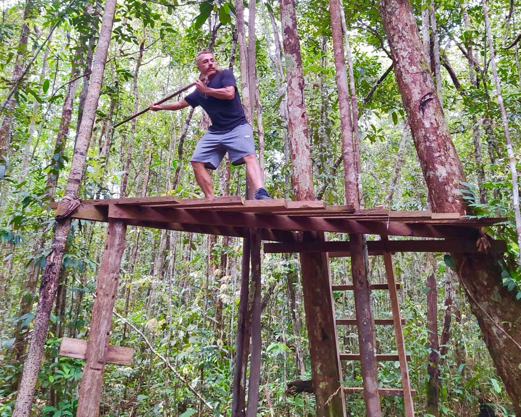 De regreso pasaremos por la zona de trampas de caza ancestral donde aprenderemos a usar la lanza, hacer trampas para aves, trampas para mamíferos y otras técnicas de supervivencia que han usado nuestros pueblos originarios de las selvas del Guainía.